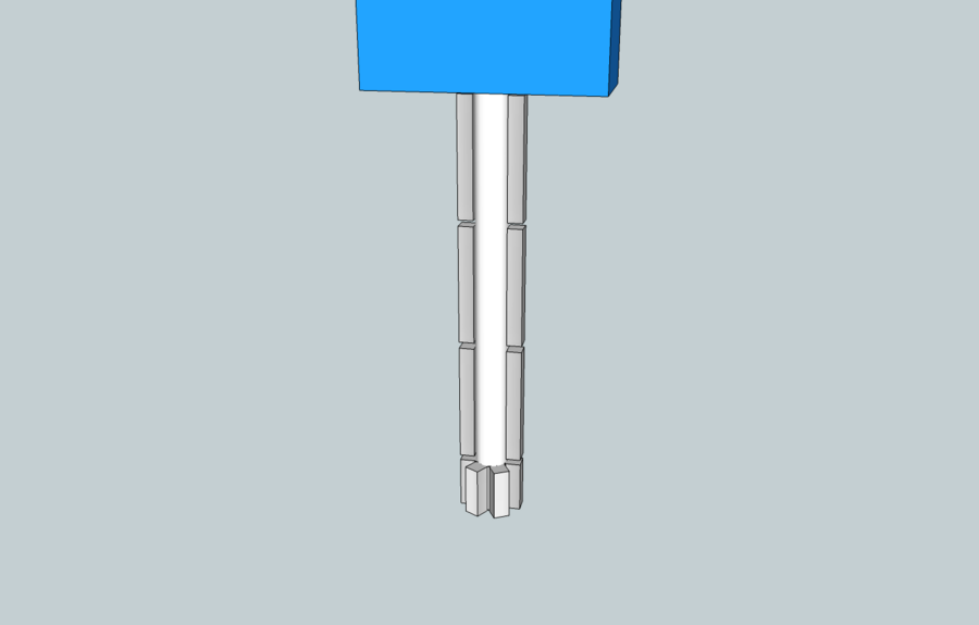 2. Put a layer of carpet tape on the handle and stick short (~1/3 handle length) sections of barstock to the edge sides of the handle.